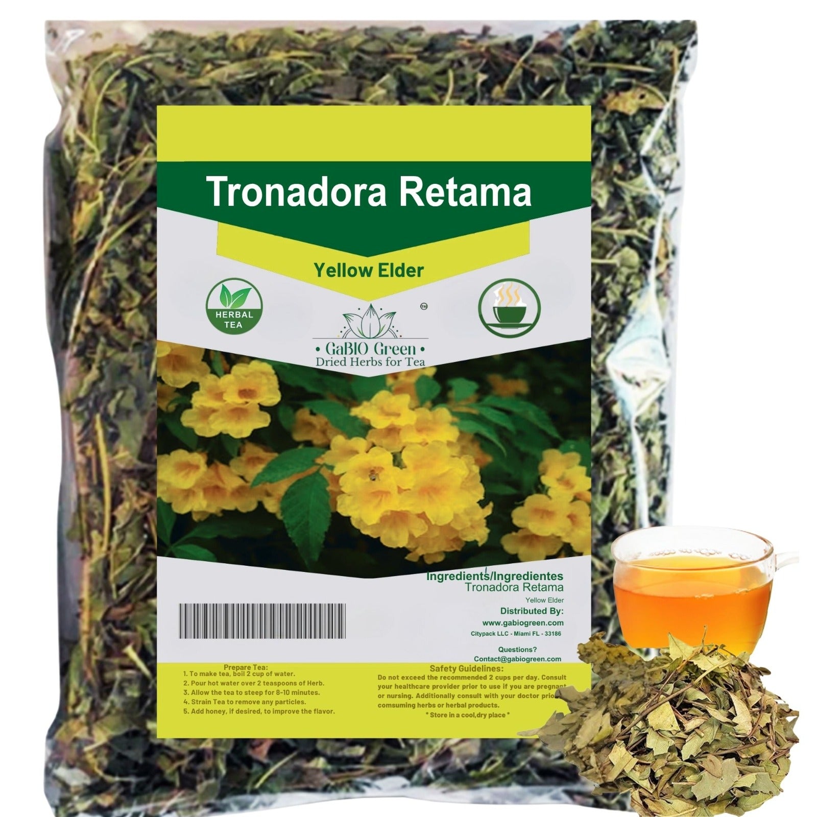 Gabio Green-Tronadora Retama, 3.09 oz/ 105 gr Premium Quality tronadora tea, resealeble bag, yellow elder herbs, tronadora hierba Non GMo, Resealable bag. | Premium Quality, Herbal Tea, Natural Dried Herbs