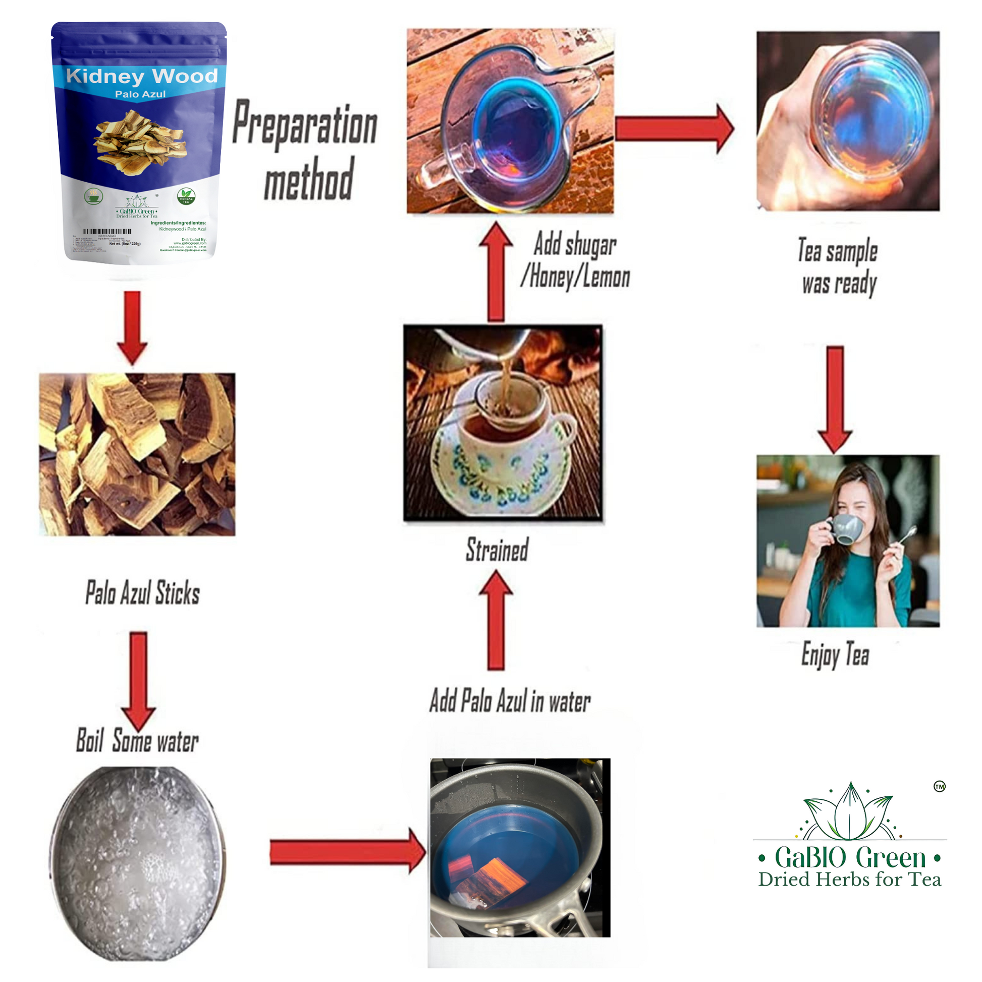 Ingredients: 100% natural dried Kidney Wood palo azul, Blue Stick Herbal Tea Bark, palo azul tea, Resealable Bag (8 oz) | Premium Quality, Herbal Tea, Natural Dried Herbs.